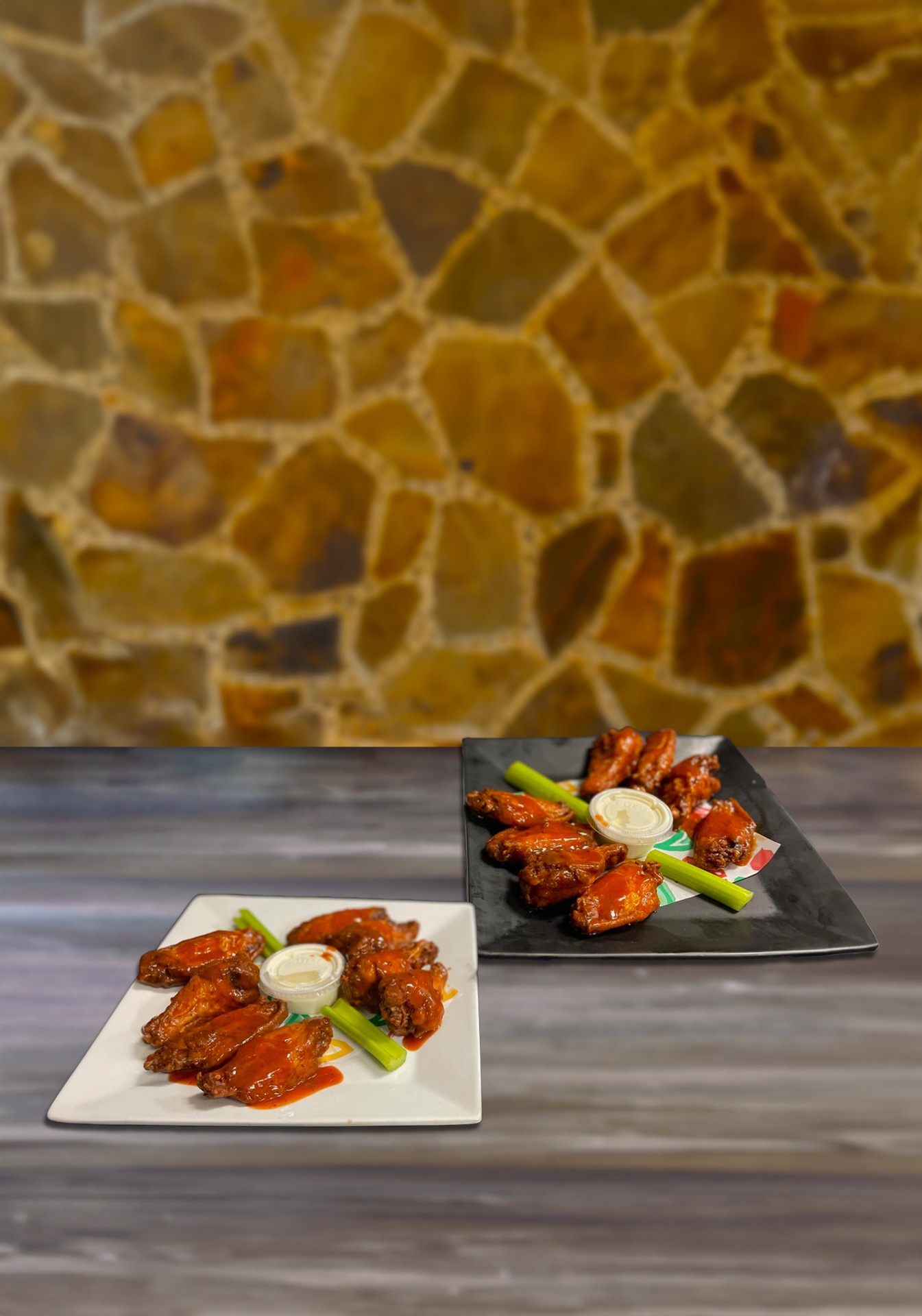 Choose between: PLAIN | HOT | HABANERO Includes celery, carrots, and 6 wings